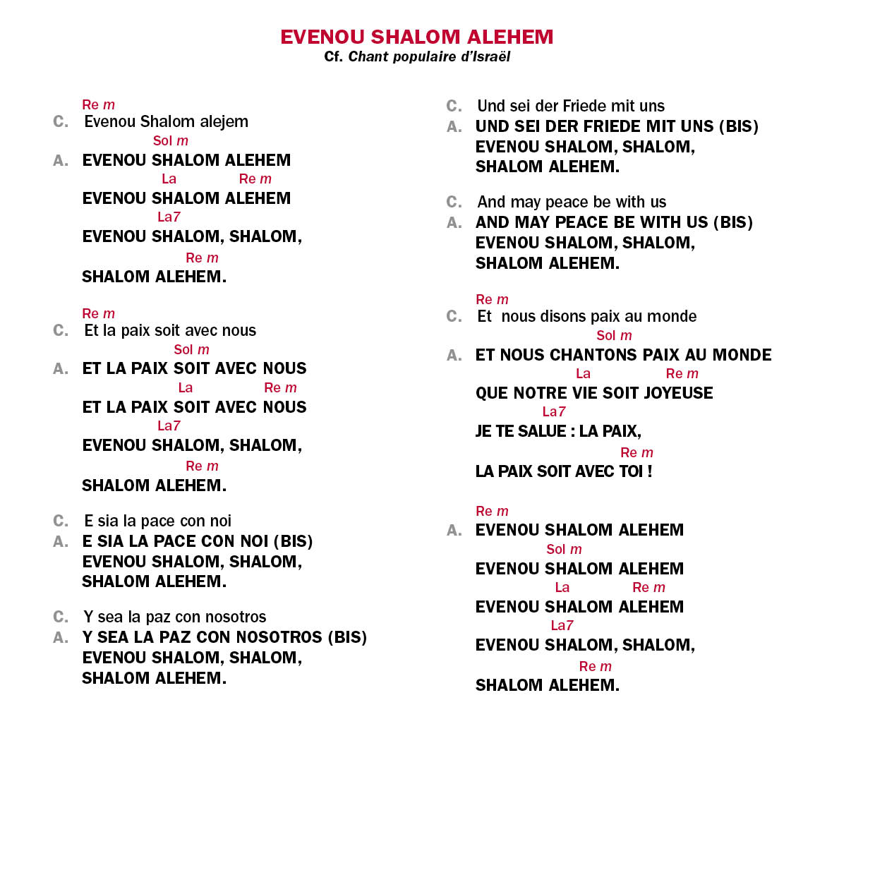 Evenou shalom alehem